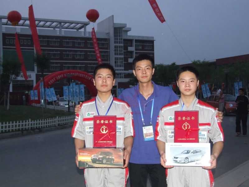 一等獎得主吳文杰(右邊),三等獎得主張興(左邊),龍神培訓(xùn)教師宋明(中間)