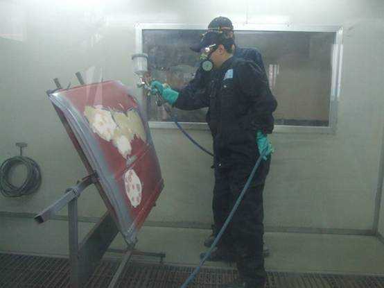 老師們進(jìn)行調(diào)配底漆