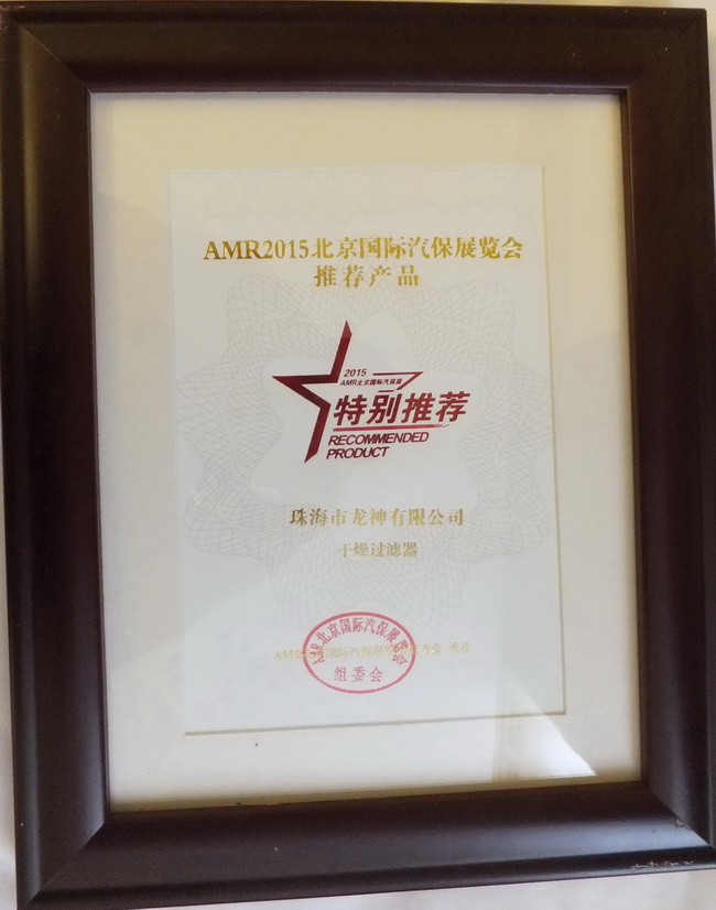2015年4月8日,2014年度“20佳汽保產(chǎn)品”、“20佳維修工具”、AMR2015北京國際汽保展推薦產(chǎn)品頒獎晚宴于北京成功舉辦。珠海龍神“干燥過濾器”,“鈑噴修復(fù)模擬車架”榮獲ARM2015北京國際汽保展覽會推薦產(chǎn)品獎。