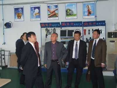 參觀生產(chǎn)部 (右一 龍神彭副總 右三 劉杰處長 左三 龍神彭總 左一 龍神蘇副總)領(lǐng)導(dǎo)合影
