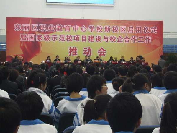 11月6日上午,東麗區(qū)職業(yè)教育中心學(xué)校在東麗湖新校區(qū)舉行新校區(qū)啟用儀式暨國家級示范校項目建設(shè)與校企合作工作推動會。市教委副主任劉欣出席并講話。教育部、中國汽車維修行業(yè)協(xié)會、市教委有關(guān)負(fù)責(zé)人,以及來自空港物流加工區(qū)、天津經(jīng)濟(jì)開發(fā)區(qū)的108家企業(yè)代表參加。 東麗區(qū)職業(yè)教育中心學(xué)校是該區(qū)唯一一所職業(yè)學(xué)校,是以中職為主體,集電大、社會培訓(xùn)為一體的多層次、多門類辦學(xué)實體。新校區(qū)投資3.6億元,占地面積382畝,建筑面積6.45萬平方米,可容納90個教學(xué)班,滿足4千余名在校生的學(xué)習(xí)和生活需要。同時,非學(xué)歷教育年均培訓(xùn)人數(shù)可達(dá)1萬人,既可滿足東麗區(qū)及周邊地區(qū)適齡人口接受優(yōu)質(zhì)職業(yè)教育的需要,又可服務(wù)于農(nóng)村勞動力轉(zhuǎn)移培訓(xùn),同時為空港物流加工區(qū)、泰達(dá)西區(qū)等園區(qū)經(jīng)濟(jì)培養(yǎng)技術(shù)型、技能型生產(chǎn)、管理和服務(wù)人才。