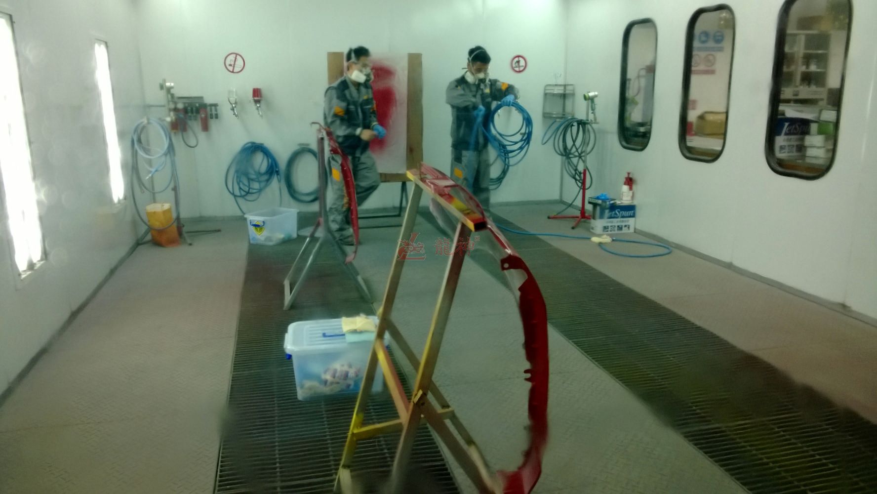 龍神產(chǎn)品鈑金快修系統(tǒng)、壓縮空氣供氣管路系統(tǒng)、噴槍、烤房專用噴漆軟管等設(shè)備為大賽的順利進(jìn)行提供了有力的保障, 同時(shí)龍神培訓(xùn)師還擔(dān)任了本次大賽的噴漆組裁判員。