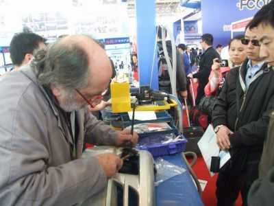外國(guó)朋友現(xiàn)場(chǎng)實(shí)操,我司彭總從旁解說(shuō)