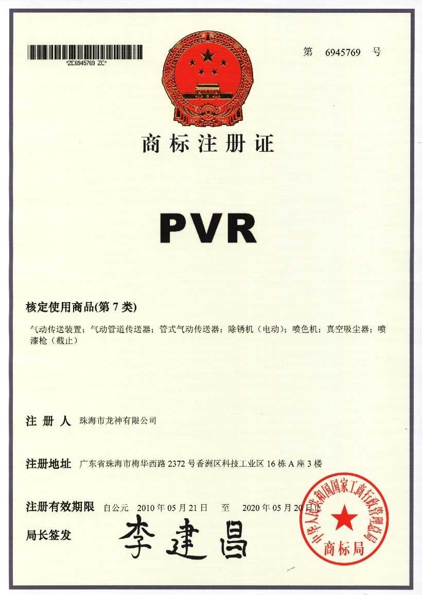 PVR商標注冊證
