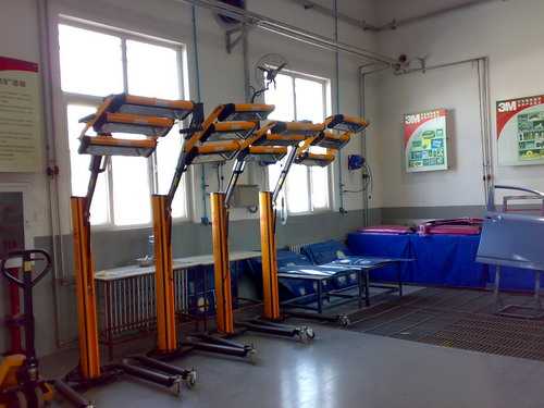 天津交院鈑噴專業(yè)設(shè)備配置 天津交校鈑噴實(shí)訓(xùn)教室--龍神鈑噴系列配套設(shè)備展示: 雙向鈑噴架、切紙架、無塵干磨系統(tǒng)、壓縮空氣供氣管路等等 配套的龍神鈑金修復(fù)機(jī)、點(diǎn)焊碰焊機(jī)、二氧化碳焊機(jī) 紅外線烤燈 噴漆柜 對色燈箱 2010-04-09 21016